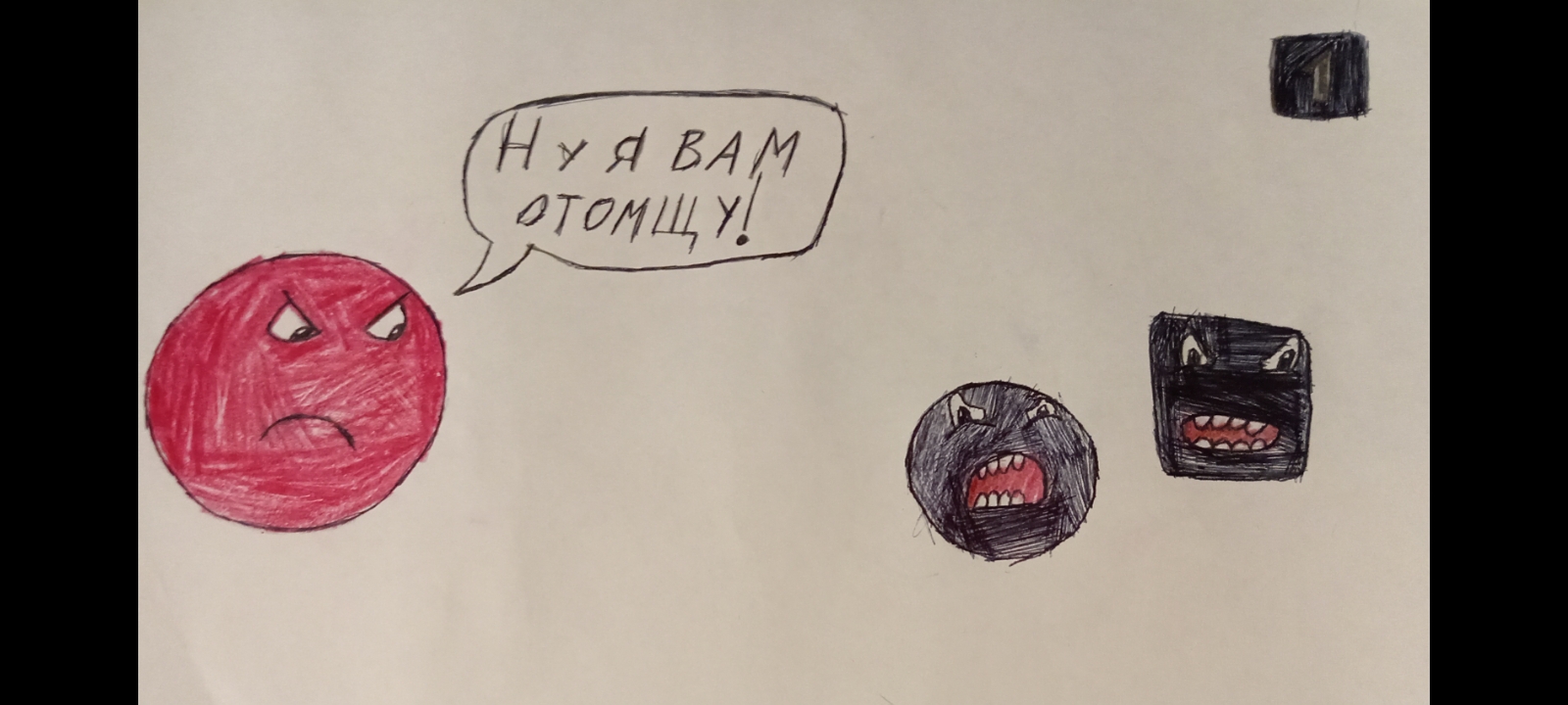 Красный Шарик побеждает чёрных шаров и квадратов. С 1 по 9 уровни.