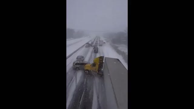 В Канаде произошло массовое ДТП из-за гололёда.
