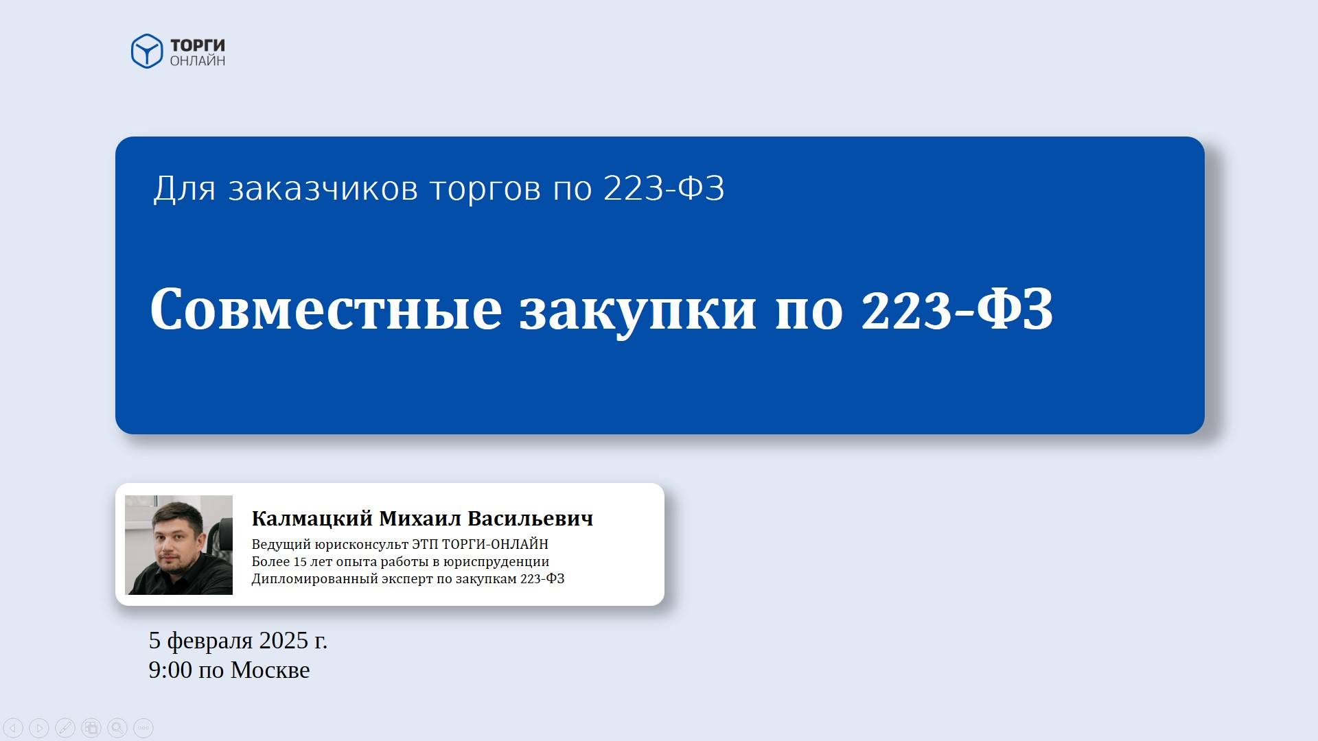 Электронная торговая площадка ТОРГИ-ОНЛАЙН предоставляет услуги по сопровождению закупок в рамках 223-ФЗ "под ключ". От формирования плана закупок до исполнения договора и даже больше! Звоните по тел.: 8 (800) 250-15-35 Специальное предложение для новых заказчиков: бесплатно разработаем техзадание с нуля, учитывая все ГОСТы, СНиПы и специфику вашей организации по 223-ФЗ при размещении закупок на ЭТП ТОРГИ-ОНЛАЙН. Только до 20 февраля. ✔️ Сэкономим на закупках до 17% бюджета ✔️ Даем конкретные рекомендации по предотвращению ошибок при заполнении закупочной документации и размещении в ЕИС ✔️ Минимизируем все риски и избавим от жалоб в УФАС Узнать подробности и оставить заявку можно по ссылке: https://torgi-online.com/razrabotka-tekhnicheskogo-zadaniya-na-zakupku-po-223-fz/