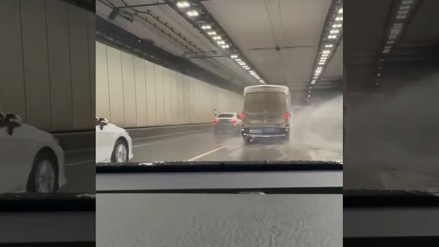Тоннель на Волоколамском шоссе: там проезжающие авто получили мойку бесплатно, потому что сработала пожарная сигнализация.