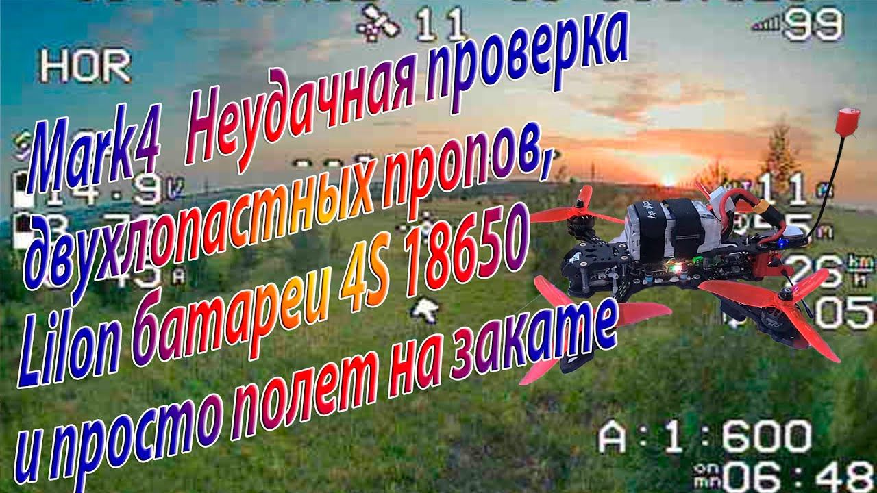 Mark4 неудачная проверка двухлопастных пропеллеров, LiIon 4S батареи и просто полёт