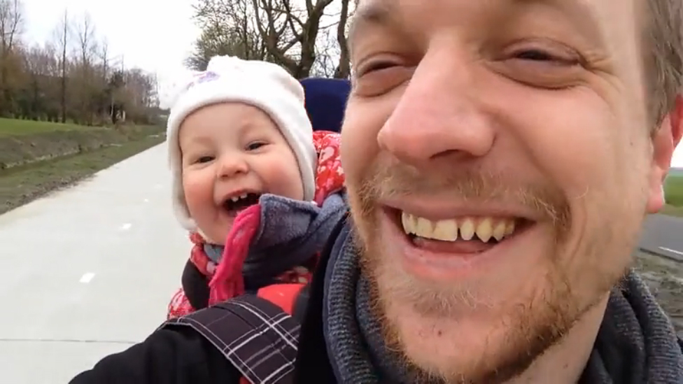 Очаровательная реакция дочери, на отчаянные попытки отца научить ее слову "папа".