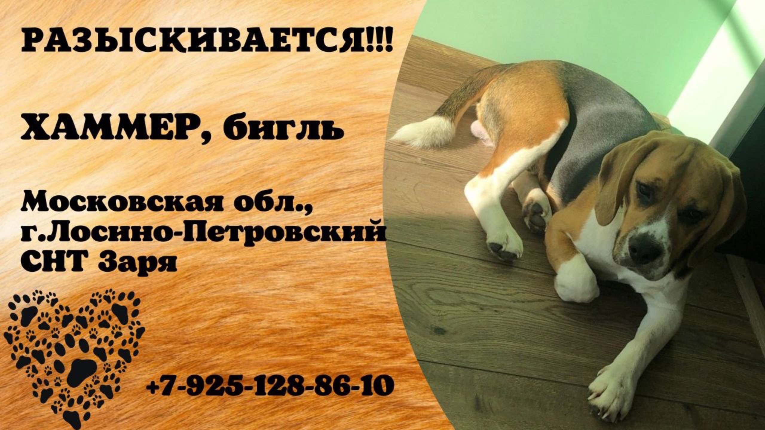 Пропала собака! ХАММЕР, бигль. Московская обл., г.Лосино-Петровский.
