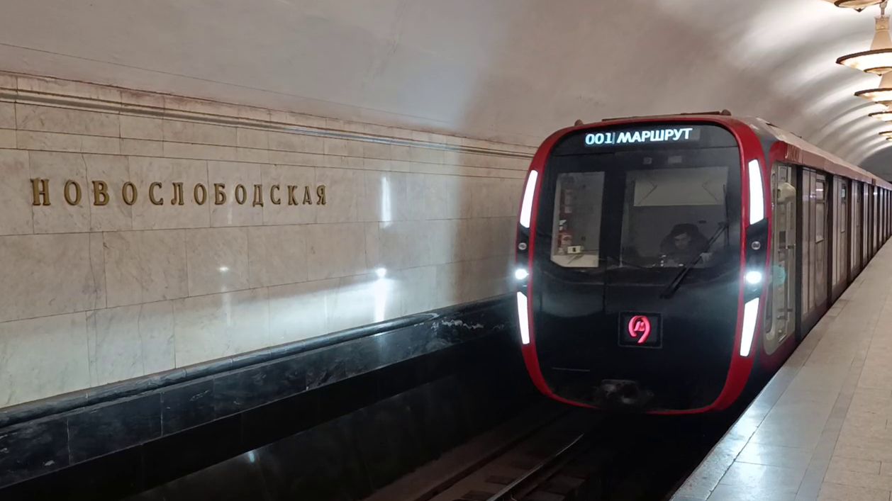 Метро Москвы красивая станция и проезд метропоезда в подземке столица России
