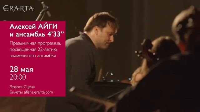 28 мая 2016 г. Алексей Айги и ансамбль «4'33"» выступят на Эрарта Сцене с праздничным концертом. Подробности и билеты онлайн http://www.erarta.com/ru/calendar/events/detail/8a8ac1df-024f-11e6-ac30-8920284aa333/