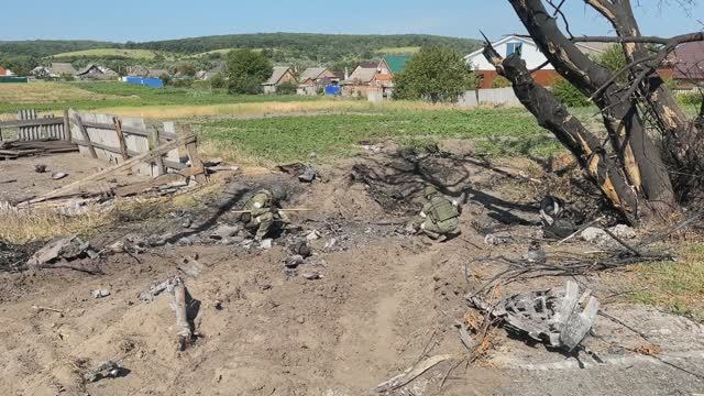Минобороны России опубликовало кадры работы военнослужащих инженерно-саперных подразделений Западного военного округа, выполняющих задачи сплошной очистки от взрывоопасных предметов ВСУ территорий в населенном пункте Новая Таволжанка Белгородской области. Источник: ДИМК МО РФ