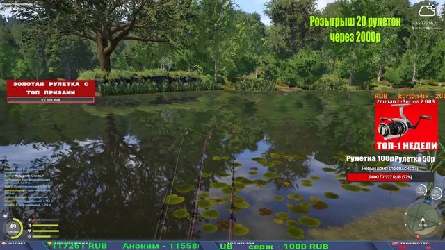 Поддержка донатом https://new.donatepay.ru/@1032463 Альтернативный донат https://www.donationalerts.com/r/kalyamba11 5536913964533059 карта Тинькоф Если стрим лагает,смотри стрим на трово https://trovo.live/s/Kalyamba_na_Ribalke Тг https://t.me/kalyamba_na_ribalke Мой ВК - https://vk.com/kalyantv НИК в игре kalyan11 НАШ ДС https://discord.gg/4ZzSQkQtsK Заказ водоема на 1 час - 500р ( весь стрим 2500р ) Модерка на канале 1300р ( каждая следующая на 100р больше) ✅Призы в рулетке "ЗОЛОТАЯ" 500р ✔ ЗОЛОТО ✔ ПРЕМ ✔ КАТУШКИ РАПТОР 40, ВЕНГИ, ТАЙГА, СИЛЬВЕР 80, И другие ✔ ПАЛКИ ПИЛКЕРНАЯ, ДОНКА МОРСКИЕ, ✔ РОД ПОД, СТУЛЬЯ ✅Призы в рулетке СТАНДАРТ : 100р ✔ катушкИ РАПТОР 40, ВЕНГИ, ТАЙГА, СИЛЬВЕР 80, И другие ✔ катушки 60 для медного ( ЭВИИ, НАТОРЫ, ГОЛДА, и тд) ✔ ПИЛКЕРНОЕ УДИЛИЩЕ КОРОЛЕВА ОКЕАНА ✔ Морское Донное удилище ✔ прем ( 3, 7, 30 дней) ✔ золото ( 1, 3, 5, 10, 20 ,50) ✔ билет на море ( 1, 3, 5 дней) ✔ голд наживка и др. ✅Призы в рулетке "СТАРТОВАЯ" 50р ✔ катушка Венга ✔ катушка "silver80" ✔ катушка "БЕЛЫЙ КАЛИБР" ✔ катушка "Черный калибр" ✔ катушка "Протон" ✔ катушка "Нарга 6000" ✔ Набор Фидерист и спинингист ✔ Карповик Фортуна ✔ фидерные удилища ✔ прем, золото, алкашка, наживки и тд P.s Рулетка это не казино, а награда за поддержку стримера. Вечный ТОП ПОДДЕРЖКИ (10.06.2025) 1. Леха сварной 214 572 2. Dimon_pokemonchik 127 034 3. Skreb79 103 061 4. Interceptor 96 230 5. FishRus86 82 500