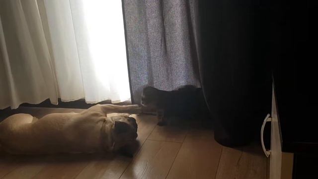 Французский бульдог играет с йорком