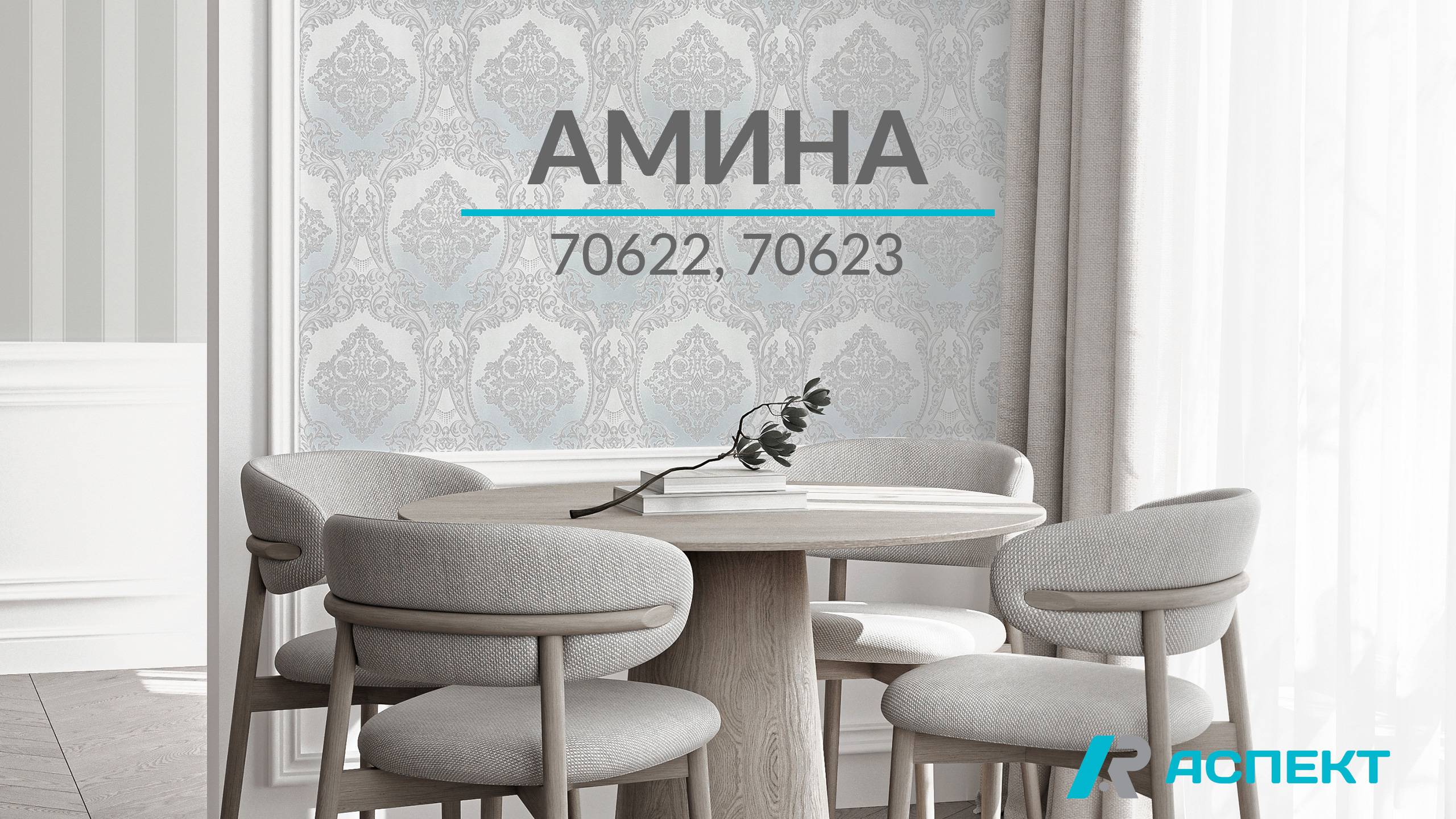 Новая коллекция «Амина» устанавливает новые тренды в декоре стен: отказ от главенствующего минимализма в пользу эстетики с многовековой историей.В центре композиции – дамаск из переплетающихся плавных линий с лёгким цветочным флёром. Принт из детально проработанных элементов кажется объёмным за счёт тиснения. Фон, имитирующий сатиновую ткань, усиливает декоративный эффект рисунка. Благодаря полосатым однотонным компаньонам, идеально сочетающимся по фактуре с основными обоями, легко найти дизайнерские решения для акцентной стены и зонирования, поиграть с геометрией и пропорциями комнаты. Компаньоны не требуют стыковки, что упрощает воплощение задумок. Колористическое решение представлено пастельными цветами: от светлых жемчужных до золотистых песочных. Декоры придают обоям глубину и создают интересную игру света и тени. Серия гармонично украсит атмосферную гостиную, будуарную спальню, столовую или объединённое пространство в классическом стиле. Немного барочной роскоши добавит изысканности, не перегружая интерьер.
