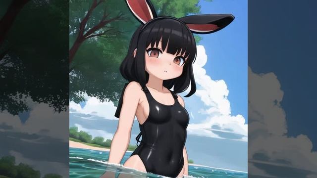 Купание девушек-кроликов в речной воде.