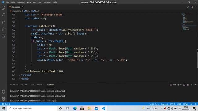 javascript project : auto text and change text color animation using html css and vanila javascript