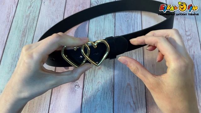 327204 Ремень Lanson Kids с золотистыми сердечками черный 80см