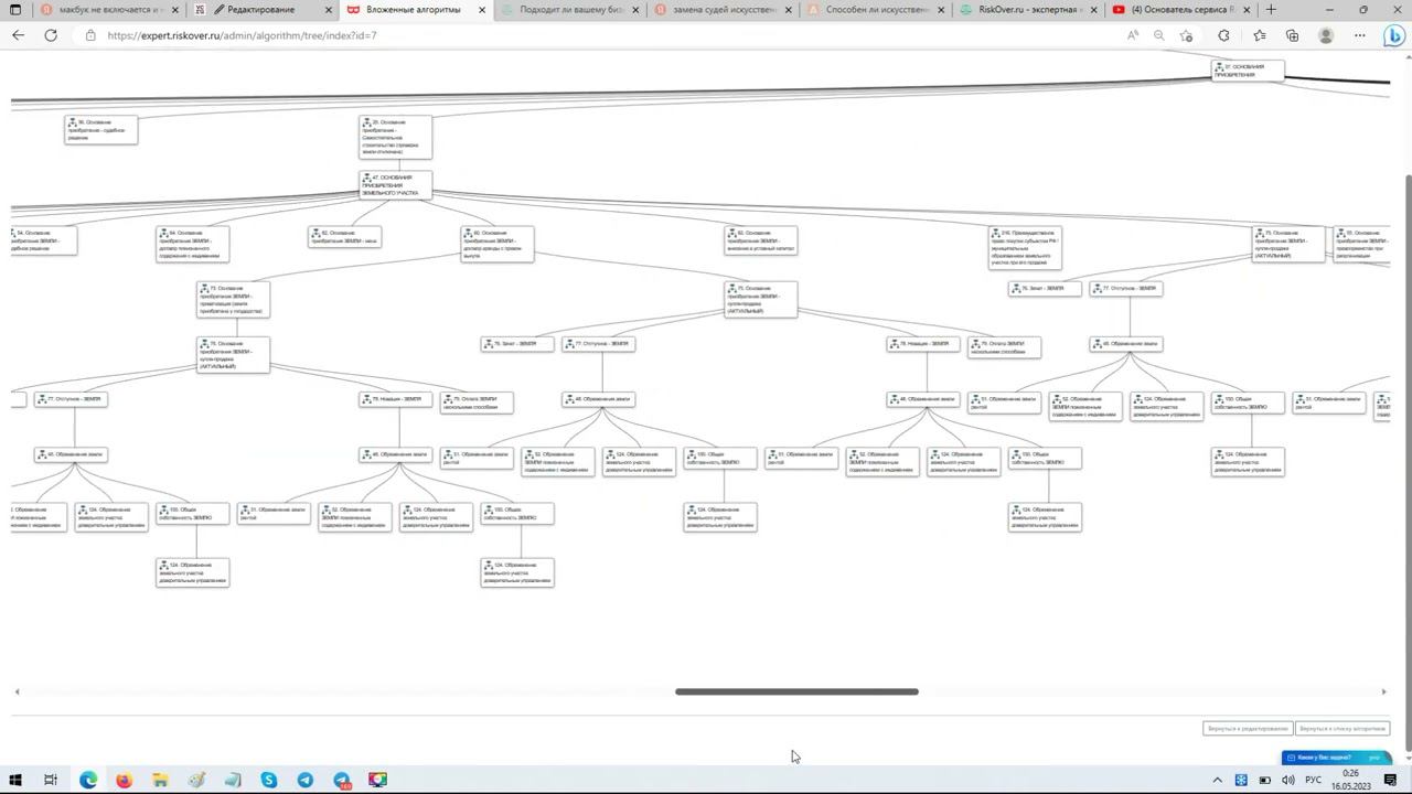 Показывается дерево алгоритмов экспертной юридической системы для выявления рисков при покупке недвижимости #legaltech #lowcode #nocode #expertsystem #legaldesign #botman