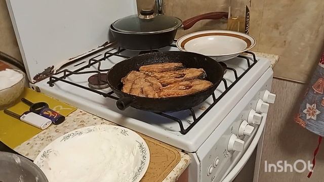 Приготовила ужин, пожарила стейки карпа. Вкусно кушаем с квасом и капустой