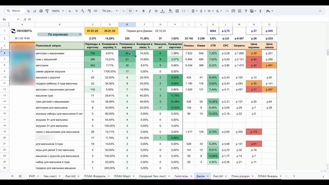 Расчет цены заказа по каждому запросу в Джем на Wildberries в Системе 10X