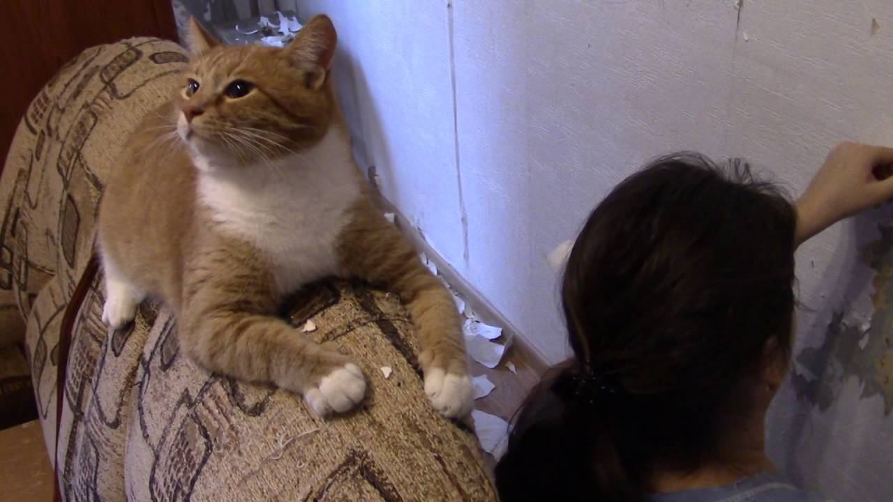 Ремонтный ВЛОГ 3: Поклеили обои в гостиной. Кот - главный прораб