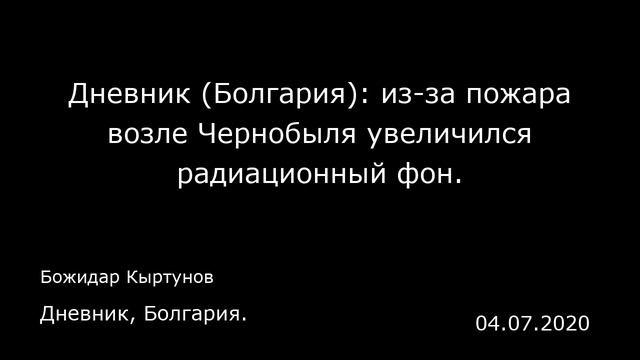 Пресса США https://www.youtube.com/playlist?list=PLK4bbBLT7WW549H298VRDFWCWKk0Ybc4a Пресса Украины https://www.youtube.com/playlist?list=PLK4bbBLT7WW5JspJT2JuBIYm94Es0D3XI Пресса Китая https://www.youtube.com/playlist?list=PLK4bbBLT7WW5zJPrror7LF5S0_E7vEXwx Пресса Германии https://www.youtube.com/playlist?list=PLK4bbBLT7WW6Ylh7J1Gn_zekI-qcLX8Xj Пресса Великобритании https://www.youtube.com/playlist?list=PLK4bbBLT7WW4cnsh4HRNaqCQDSOz-aC8N Пресса Франции Пресса Турции https://www.youtube.com/playlist?list=PLK4bbBLT7WW5qDpUjJuvTt03SLZinlRil А так же пресса: Молдавии, Казахстана, Кубы, КНДР, Палестины, Сингапура, Морокко, Узбекистана, Бельгии, Хорватии, Южной Кореи, Мексики, Судана, Колумбии, Ирака, Канады, ОАЭ, Туниса, Иордании, Грузии, Португалии, Болгарии, Эстонии, Австрии, Словакии, Литвы, Израиля, Сирии, Норвегии, Йемена, Белорусии, Азербайджана, Бахрейна, Катара, Сербии, Аргентины, Швейцарии, Ирана, Бразилии, Дании, Чехии, Польши, Латвии, Испании, Армении, Японии, Ливии, Ливана, Саудовской Аравии, Кувейта, Австралии, Египта, Финляндии, Швеции, Италии и других стран: https://www.youtube.com/view_all_playlists Дорогие слушатели! Подписка на наш канал окажет нам большую поддержку. Благодарим вас за неё! ПОДПИСЫВАЙТЕСЬ НА КАНАЛ: https://www.youtube.com/channel/UCDyxWZW6AabSOwwepI8_bGA?sub_confirmation=1 Дневник (Болгария): из-за пожара возле Чернобыля увеличился радиационный фон. Дневник, Болгария. Божидар Кыртунов 04.07.2020 Украинские власти заявили, что радиация вблизи Чернобыльской АЭС в несколько раз превысила норму. Причиной этому стал лесной пожар в этом районе, сообщил директор Государственной экологической инспекции Украины Егор Фирсов в Фейсбуке. «Есть плохие новости», — написал он в воскресенье и опубликовал видео, на котором измеряют и показывают нынешние показатели радиации. Результат оказался 2,6 мкЗв, что в 16 раз выше нормы. Фирсов подчеркнул, что высокие уровни радиации наблюдаются только в центре пожара, охватывающего приблизительно 20-25 гектаров. По его словам, главная проблема заключается в том, что пожары возникают после поджога высушенной травы. Это часто происходит после окончания зимы и при жарком сухом лете. По словам пресс-секретаря киевского областного управления Виктории Рубан, причина пожара не установлена, но речь идет, скорее всего, о человеческом факторе. Киев направил сотню пожарных, два самолета и вертолет, чтобы остановить огонь В понедельник Фирсов сообщил, что Государственный научно-технический центр по ядерной и радиационной безопасности провел исследование, результаты которого обнадеживают. «Не бойтесь открывать окна и проветривать помещения во время изоляции», — заявил он. Взрыв четвертой атомной электростанции в 1986 году привел к серьезной экологической катастрофе в Европе. Людям запрещено жить в радиусе 30 километров от электростанции. Комментарии читателей: deepblue: Мало нам коронавируса, не хватало еще и радиации. Еще и астероид приблизится к Зе... Оригинал публикации: https://www.dnevnik.bg/sviat/2020/04/06/4050943_radiaciiata_kr