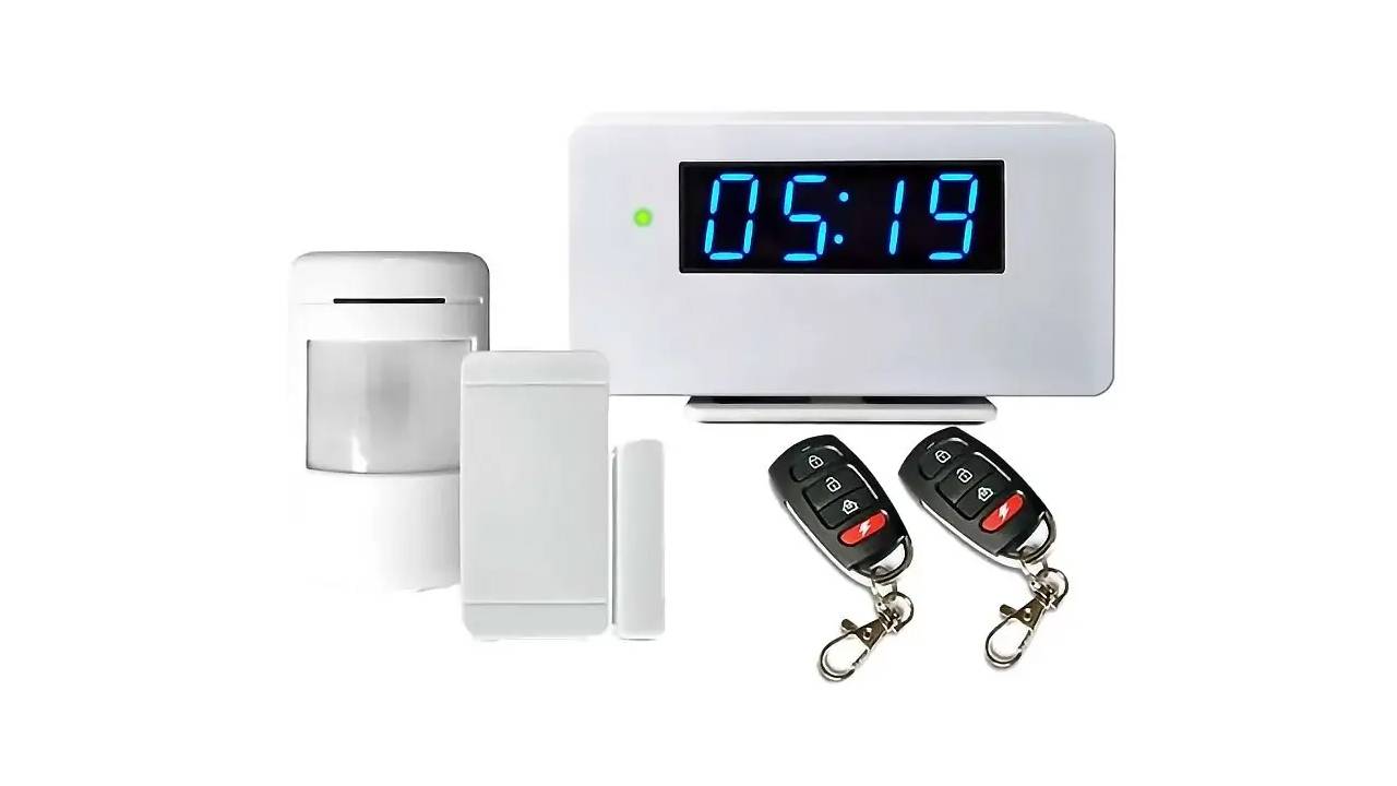 Комплект охранной сигнализации состоит из датчика открытия, датчика движения, двух пультов дистанционного управления и центральной панели. GSM блок выполнен в оригинальном корпусе обычных бытовых часов. Обладает функциями предупреждения пожара, предотвращения кражи, SMS информирования об экстренных ситуациях. Поддержка до 20 беспроводных датчиков, встроенная сирена и аккумулятор. Встроенный микрофон для удаленного контроля помещения по телефонному звонку. Управление охраной через SMS (постановка, снятие, частичная охрана). Функция дверной звонок - https://recdvr.ru/product/ohrannaja-gsm-signalizacija-dlja-chastnogo-doma-ili-dachi/ Особенности Маскировка под часы Внешний вид сигнализации неотличим от обычных электронных часов, что бесспорно является дополнительной защитой от злоумышленника. Встроенный микрофон Администратор или пользователь может позвонить на номер панели и включить режим двусторонней связи. Также администратор может активировать функцию постановки/отключения охраны. Совместимость Датчики подключаются к главному пульту сигнализации на радиочастоте 433 МГц. Благодаря этому устройство совместимо с большинством подобных датчиков и розеток. Удаленное управление Мобильное приложение (Android, iOS) для сигнализации имеет удобный графический интерфейс для управления сигнализацией, а с помощью СМС команд можно ставить и снимать систему с полной охраны, установить частичную охрану. Всего сигнализация имеет 4 типа охранных зон: тревожная (полная), домашняя (периметр), 24 часа (для датчиков дыма, газа, воды) и дверной звонок (уведомления без включения сирены). SMS-оповещения При срабатывании охранных датчиков панель отправит тревожное СМС сообщение на запрограммированные номера. Есть возможность настроить СМС уведомление о низком заряде батареи. Управление через пульт ДУ Управление сигнализацией возможно с помощью пультов дистанционного управления. Поддержка до 5 штук. В данном комплекте поставляется 2 пульта. Встроенный аккумулятор Встроенный аккумулятор емкостью 1500 мАч позволяет работать системе автономно при отключении электроэнергии до 6 часов. Технические характеристики Микрофон: встроенный Материал корпуса: ABS пластик Частоты: 433,92 Мгц, GSM 850/900/1800/1900 МГц Количество подключаемых датчиков: 20 Поддерживаемые ОС: Android, iOS Разъем питания: mini USB Особенности: поддерживаемое количество умных розеток не более 2 шт., оповещение о тревоге не более 4-х номеров, удаленное управление с помощью телефона, уведомления о температуре, управление по датчику температуры, управление сигнализацией пультом ДУ (поддерживает до 5 штук) Аккумулятор: 1500 мАч Питание: 100-240 В; 50 / 60 Гц, DC 5 В, Литий-ионная батарея Громкость сирены: 100 дБ Рабочая температура: От -10 °C до +50 °C Дальность связи: до 50 м Тип сим карты: microSIM Цвет: белый Габариты: 138x70x25 мм Вес: 147 грамм Комплектация Главная панель, пульт дистанционного управления (2 штуки), датчик открытия двери/окна, детектор движения, адаптер переменного тока, инструкция, упаковка.