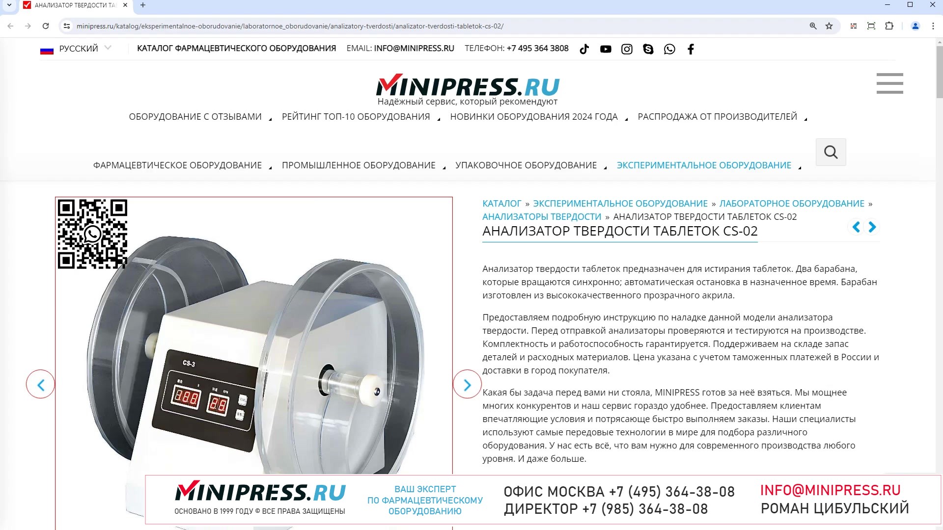 Minipress.ru Анализатор твердости таблеток CS-02