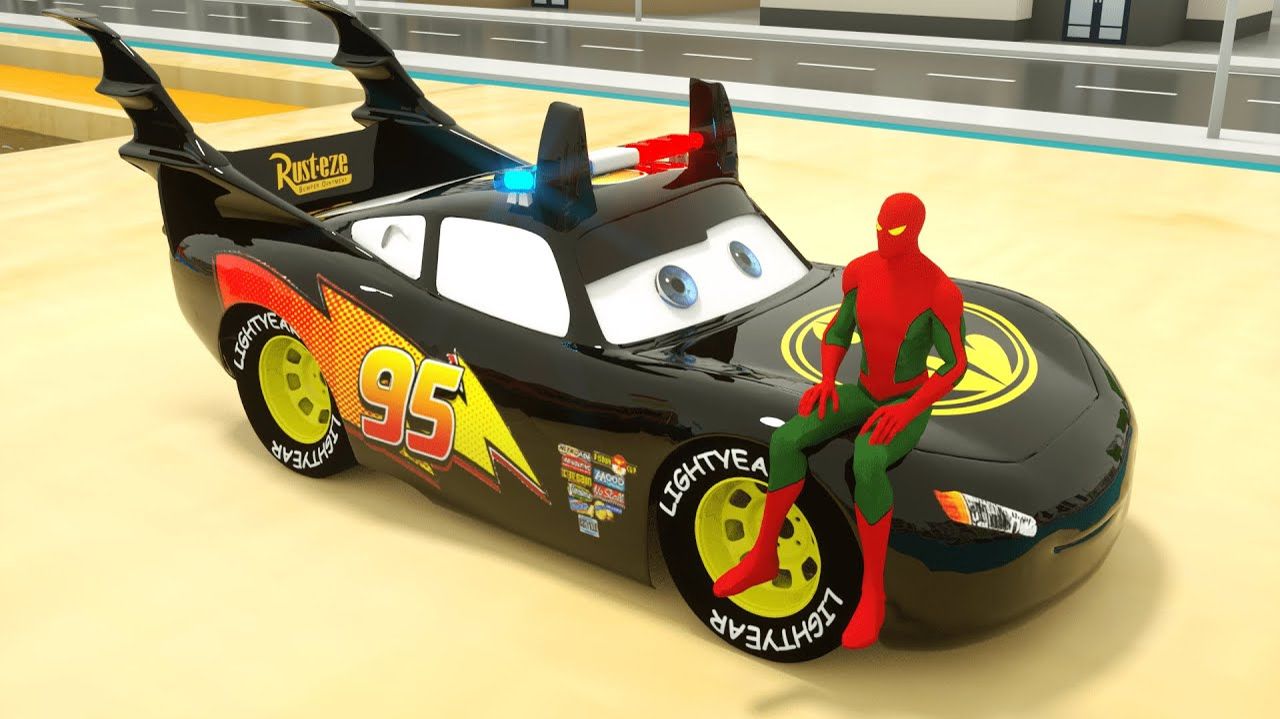 Изучаем цвета с машинками Маккуином, Мактраком и Человеком-пауком — мультфильм для детей