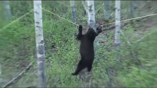 Медведь идет по канату за едой
