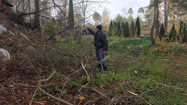 Уборка спила дерева на кладбище Белая Станция.