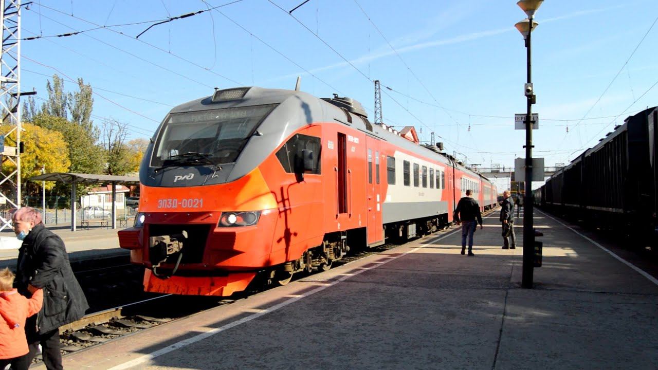 Сообщение Шептуховка - Ростов-на-Дону. 16.10.2020. Suburban train EP3D-0031 depart from Novocherkassk.