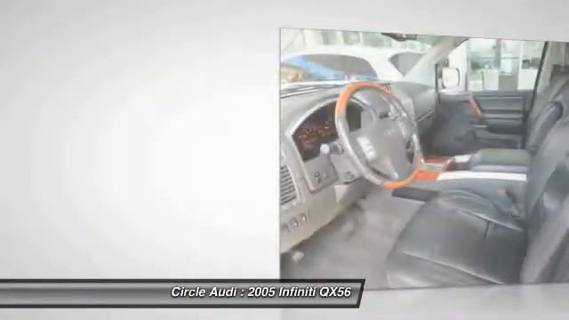 2005 Infiniti QX56 http://www.circleaudi.com For more information on this vehicle and our full inventory, call us at (562) 597-3663 Circle Audi 1919 North Lakewood Blvd Long Beach CA 90815 Running Boards, Roof Rack, Towing Package, Parking Sensors, Heated Seats, HomeLink, 3rd Row Seating, and BackUp Camera. Graphite Leather, Bose AM/FM/6CD In-Dash Audio System, Navigation System, Power Sliding/Tilt Glass Sunroof, and Steering wheel mounted audio controls. J.D. Power and Associates gave the 2005 QX56 4 out of 5 Power Circles for Overall Performance and Design. We can also Powder Coat the wheels any color!! - - - Buy with Confidence from Long Beach Audi, one of the longest operating Audi stores on the West Coast. Our Audi Service Center has done the following: VEHICLE SAFETY INSPECTION, NEW WIPER BLADES, SMOG CHECK, OIL AND FILTER CHANGE. Every car you buy from us does get a Full Tank of Gas, Free Car Wash's, and a Complete Detail.