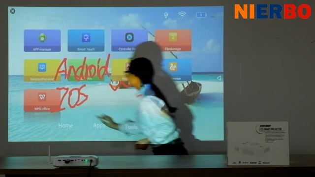 Mini Portable Projector with Full 3D 4k decoding Android 4.4 with Bluetooth, Built in 15000mAh Battery, 2G+8G Octa Core CPU, 250 ANSI lumens, 2500 lumens cinema movies video Home theater, Professional for teaching and meeting with interactive function both in android and windows system purchase link:https://www.nierbo.com/hc40_p0064.html