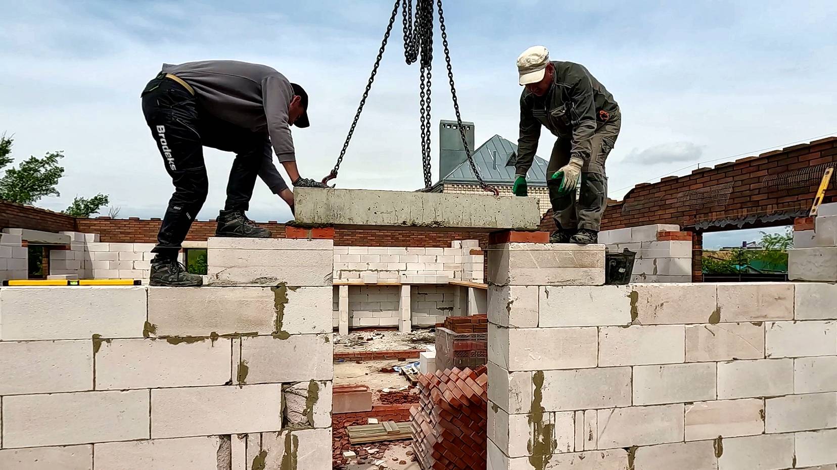 Построили первый этаж. Подробное строительство двухэтажного дома с гаражом. Часть 4.