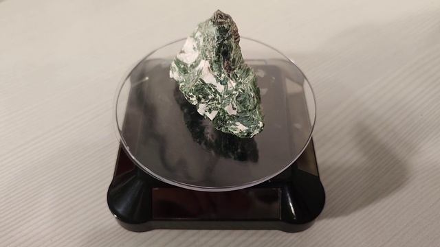 Изумрудно-зелёные кристаллы актинолита на светло-сером полевом шпате