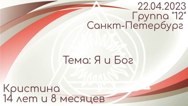 Cпикерская DAA. Кристина 14 лет и 8 месяцев ч/в. Группа "12" Санкт-Петербург. Тема: Я и Бог 22.04.23