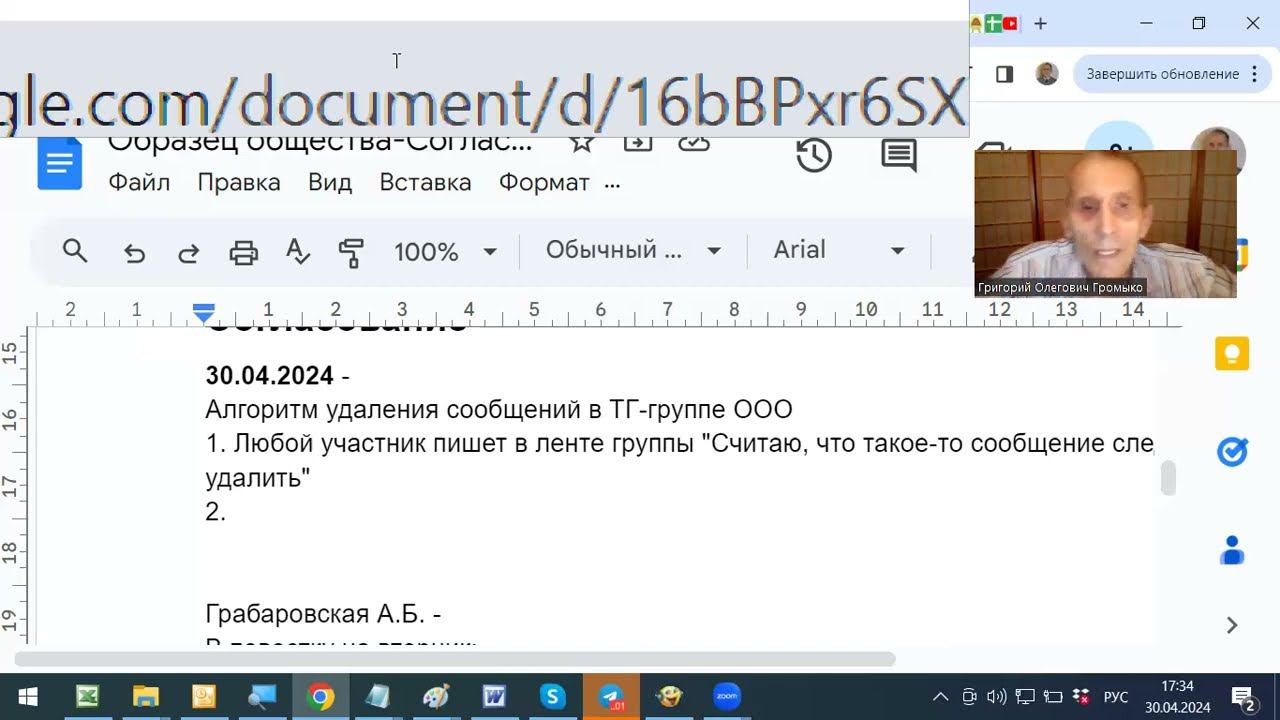 Попытка сделать алгоритм удаления сообщений из ТГ-чата группы ООО - не получилась, так как пришли к пониманию, что возможен сг=== Оглавления видео-книг в диалогах - НИР - Образец общества или Действующая модель нового социума - https://docs.google.com/document/d/1TZ9_Hw6BdtSUjFmmdXtdwmyUoGnMcEOHk1ncKHmAenI/edit?usp=sharing ВчВО - Воспитание через взаимное обучение - https://docs.google.com/document/d/1x6Vo9ACC9DXArfn7_Ob6g4_0K9GCNLEJ9SZWgDcdJ-U/edit?usp=sharing Русская инженерная школа https://docs.google.com/document/d/1dF_ZrtReEpaXzhxxHmjRwprgjP0xB0HKTBERfMChG20/edit?usp=sharing === Участвуйте в нашей работе-онлайн - Среда с 15 до 18 мск, группа "Образец общества" -текущая работа. Суббота с 18 до 20 мск, - "Талгенизм" - знакомство и конкретная работа по самоучителю всех участников "бригады разработчиков" - повестка дня здесь - https://docs.google.com/document/d/1z8eyCzA_YMt3oKhA7ZBugR2UPO6ntMUM4rt8X727Eb0/edit#heading=h.inqtax6ld10f Все встречи в зуме НИРа https://us04web.zoom.us/j/7902285993 код 030201 Все протоколы групп находятся в доке по этой ссылке - https://docs.google.com/document/d/1z8eyCzA_YMt3oKhA7ZBugR2UPO6ntMUM4rt8X727Eb0/edit?usp=sharing сохраните её себе в удобном месте, чтобы потом не тратить впустую своё и моё время на её поиски. Пожалуйста! === Е-учебник. Концепция. 19:16 - https://youtu.be/sMIjL5MQthk?si=0XmwCMdPSUjXQmC9 === Масальцева Ольга Владимировна, учитель английского, шк. 161, Зеленогорск, Красноярский край, - разговоры - Шк.161-Романова-Масальцева-алгоритмы работы в парах, 26.01.2022 14:18 - https://youtu.be/rkBGKbdzn8w?si=v7b5intgaWnr4nvY Иняз-спорт в школе, Ольга Масальцева - 07 02 2022 44:20 - https://youtu.be/HI4mfCl0R8g?si=_l0XHuxBi7e6Dh1E Разноуровневые дети в парном обучении инязу, 10 12 2022 30:46 - https://youtu.be/Hs1kV0KL0VU?si=SvZXmY-87rUQA4LG === Учитель географии Кряжева Джамиля Селикжановна, Красногорск, Московская область, рассказывает - 26:26 - https://youtu.be/vMHFBbFbECs === ВчВО - Воспитание через взаимное обучение - видео-книга в диалогах - https://docs.google.com/document/d/1x6Vo9ACC9DXArfn7_Ob6g4_0K9GCNLEJ9SZWgDcdJ-U/edit?usp=sharing Телеграм-группа "Согласование" Народного института развития НИРа - https://t.me/+gCLrG5tR3NUwNGVi НИР - Действующая модель нового социума - видеокнига в диалогах - https://docs.google.com/document/d/1TZ9_Hw6BdtSUjFmmdXtdwmyUoGnMcEOHk1ncKHmAenI/edit?usp=sharing === ТГ-группа "Воспитание через взаимное обучение - https://t.me/+natvdoOosMdmZWIy ТГ-группа "Школа радости" - https://t.me/+Aj0CY63HU0QxNjQy ВК-группа "Воспитание через взаимное обучение" - https://vk.com/club21598670 ВК-группа "Школы Радости" - https://vk.com/club21598670 а также - https://vk.com/schoolradosti161 Плэй-лист видео про Школа Радости-161 - https://youtube.com/playlist?list=PL949ECk7DvmQUY9mr2a9IVW_j_gHW-OrS === Связаться с Громыко Григорий Олегович можно так - Телеграм - https://t.me/GrigorijGromyko ВКонтакте - https://vk.com/id23067191 Фэйсбук - https://www.facebook.com/grigorij.gromyko === Работу нашу мы ведём в Телеграм вот здесь - приглашаю! https://t.me/+AsDleWWhqRg1NzAyовор с отрицательными результатами. О процедуре приёма участников НИРа - она есть, но не используется. Хижняк на себе тестирует процедуру, которая есть в НИРе, приёма новых участников.