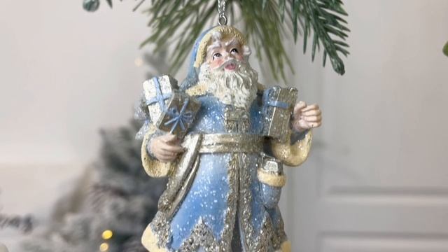 Ёлочная игрушка ДЕД МОРОЗ С ПОДАРКАМИ в короткой шубе, полистоун, 11 см, E1029-1