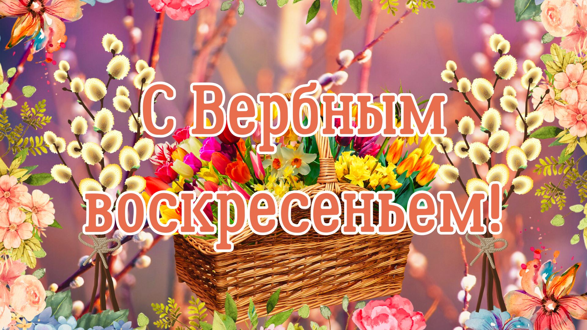 С Вербным Воскресеньем! Открытка. Поздравление