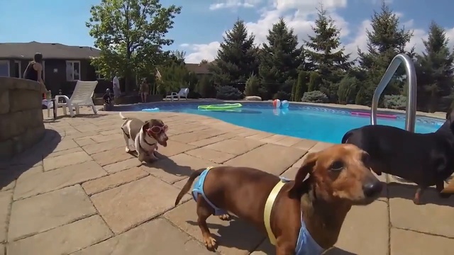 Вечеринка у бассейна. Забавные таксы развлекаются