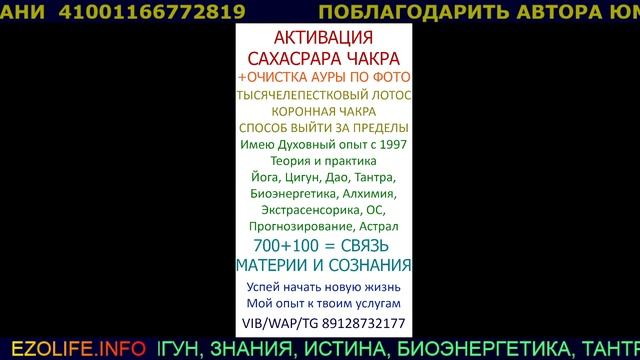 ЕДИНЕНИЕ ТЕЛА РАЗУМА ДУХА ЭФИР МАССАЖ МЕДИТАЦИИ ВЫХОДЫ ИЗ ТЕЛА СОЗНАНИЯ МОЙ САЙТ http://ezolife.info/ МОЙ КАНАЛ https://www.youtube.com/user/379ETERNITY/videos МОЯ ФАНТАСТИКА http://samlib.ru/p/putewoj_m/ RUTUBE https://rutube.ru/channel/23989944/