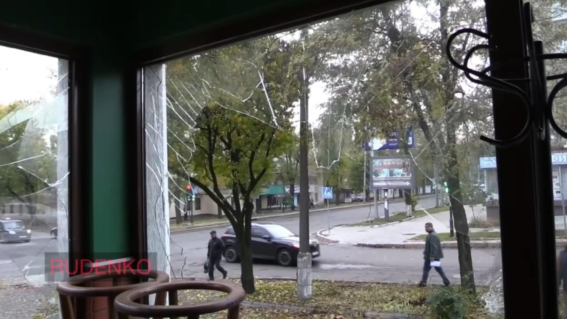 Последствия обстрела ВСУ центральной части Донецка. Пересечение ул. Университетская и пр. Панфилова