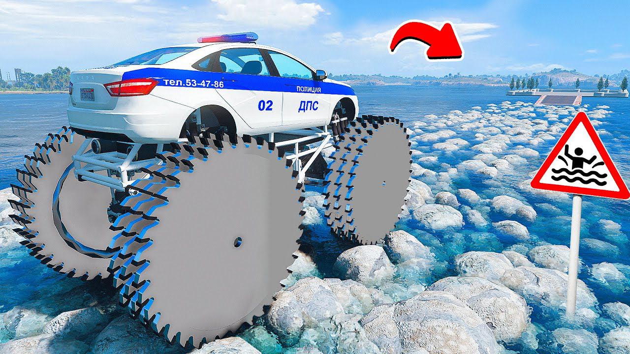ПРОЕХАЛ ВОДНЫЕ КАМНИ на ГИГАНТСКОЙ ДПС ЛАДЕ ВЕСТЕ в ГТА 5 МОДЫ - ЭКСПЕРИМЕНТЫ в GTA 5 MODS