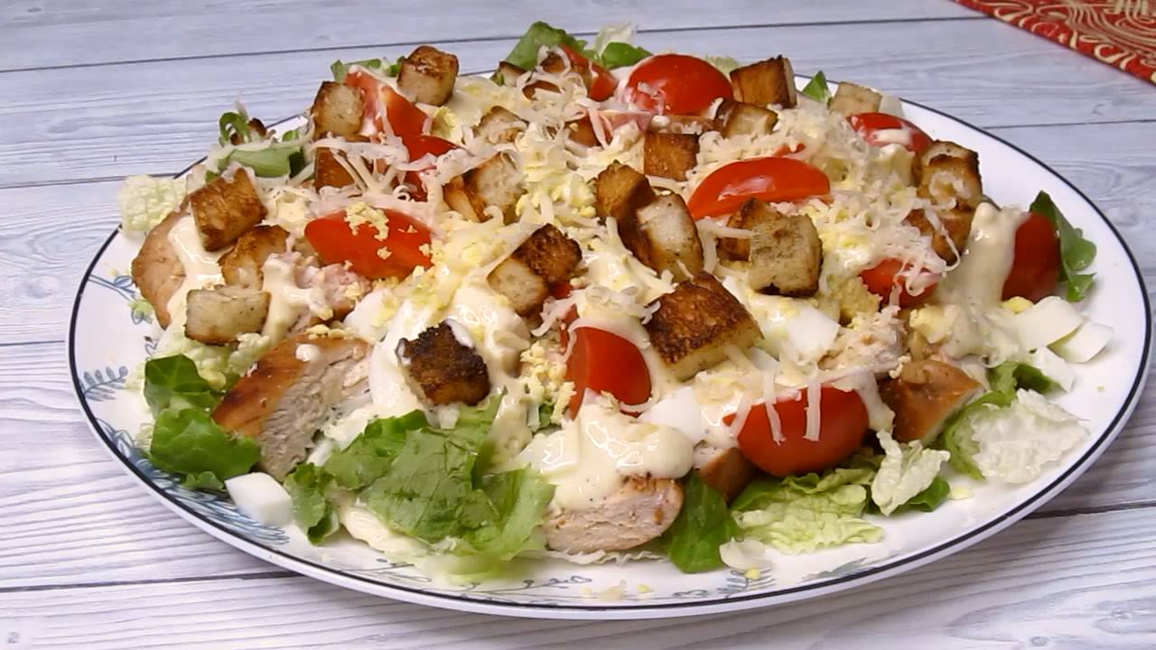Шикарный салат, не зря его любят все...А если не любите, то приготовьте по этому рецепту, мнение своё о нём измените! Рецепт: Куриное филе - 1 шт Для сухариков - 3 кусочка батона Помидоры - 6 шт, лучше черри Яйца - 2 шт Сыр - 40 гр Салат - айсберг или пекинская капуста + салатные листья Маринад для курицы: Растительное масло - 1 ст.л Соевый соус - 1 ст.л Паприка - 0,5 ч.л Перец, соль по вкусу Чеснок - 1 зубчик Заправка для салата: Майонез 2 ст.л Горчица - 0,5 ч.л Лимонный сок - 1 ст.л (не больше) Соль, перец по вкусу Чеснок - 1-2 зубчика