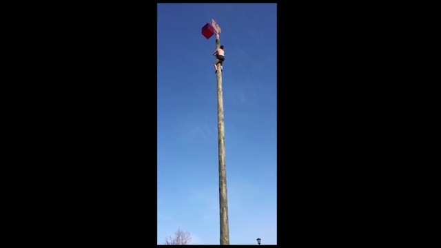 Мужчина сорвался со столба на масленицу