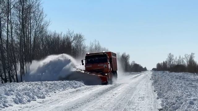 Уборка снега на дороге в Амурской области