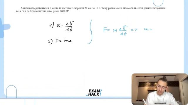 Автомобиль разгоняется с места и достигает скорости 20 м/с за 10 с. Чему равна масса - №26011