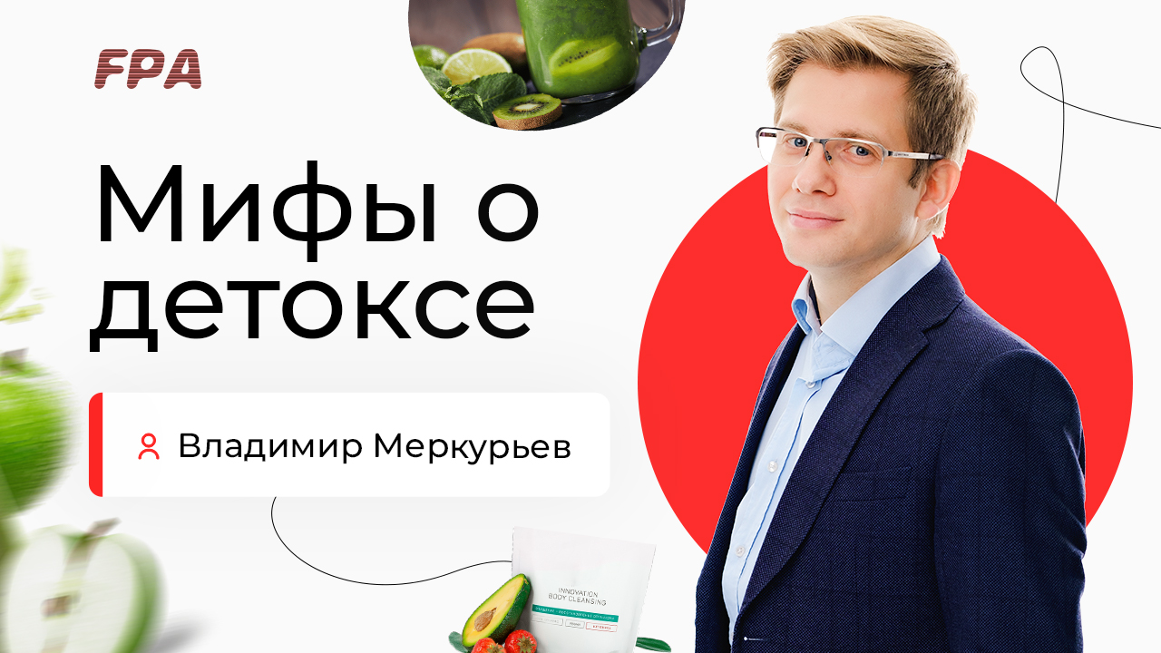 Что такое детокс и зачем он нужен? Мифы о детоксе разбирает эксперт-преподаватель FPA, физиолог, кандидат биологических наук Владимир Меркурьев. Вебинар «Мифы и легенды физиологии и нутрициологии» смотрите полностью на YouTube-канале FPA https://youtu.be/lutrmjTR7i0 и делитесь впечатлениями в комментариях! Владимир Меркурьев https://t.me/fiziologmerkuryev — эксперт-преподаватель FPA, физиолог, кандидат биологических наук. __________ Ассоциация Профессионалов Фитнеса (FPA) - лидер на российском рынке фитнес-образования. С 2000 года в FPA сертифицировано более 22 000 специалистов. Наши выпускники работают более чем в 1000 клубах Москвы, России и стран зарубежья ? http://fitness-pro.ru/ __________ Дистанционные программы обучения: – Персональный фитнес-тренер: https://bit.ly/39A06Xr – Фитнес-нутрициолог: https://bit.ly/37oC14n — Инструктор групповых программ: https://bit.ly/3AUq3ip – Детский фитнес: https://bit.ly/34OjT4B __________ Очные программы обучения: – Персональный фитнес-тренер: https://bit.ly/2ONTH2K – Инструктор групповых программ: https://bit.ly/2uFh3Re __________ Мы в соцсетях: ВКонтакте: https://vk.com/fpafpa Telegram-канал: https://t.me/trenerskayaFPA Telegram-чат для тренеров: https://t.me/trenerskayaFPAchat Яндекс.Дзен: https://zen.yandex.ru/fitness_pro_ru