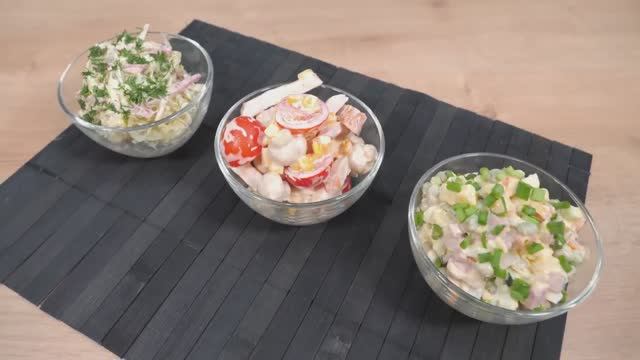 Готовлю салаты на праздничный стол. Три салата. Салат оливье. Салат куриный. Салат Днестр. Все три салата неимоверно вкусны. Готовятся из простых продуктов. Без заморочек. Имеют отличный вкус. Все три салата идеально подходят для праздничного стола. Салаты на любой вкус. Улетают со стола в первую очередь. Вкусно, сытно, быстро. Будет интересно. Желаю Вам приятного просмотра. САЛАТ ОЛИВЬЕ С КОПЧЁНОЙ КОЛБАСОЙ НАМ ПОНАДОБИТСЯ: Колбаса (полукопчёная/копчёная) 200 гр Картофель отварной 300 гр (2-3 шт) Морковь отварная 150 гр (1шт) Горошек консервированный 1 банка (300 гр без жидкости) Яйца вареные 3 шт (200 гр, у меня крупные) Огурец свежий 200 гр (2 шт) Соленые огурцы 200 гр (2-3 шт) Лук репчатый 1 шт (70 гр) Соль 1-2 щепотки (по желанию) Майонез (у меня домашний) 200 гр САЛАТ КУРИНЫЙ НАМ ПОНАДОБИТСЯ: Куриная грудка копчёная 200 гр Сыр твердый 150 гр Кукуруза консервированная 200 гр Маринованные шампиньоны 150 гр Помидоры 200 гр Майонез (у меня домашний) 150 гр САЛАТ ДНЕСТР НАМ ПОНАДОБИТСЯ: Капуста белокочанная 200 гр Колбаса копчёная/полукопчёная 100 гр Горошек консервированный 100 гр Перец молотый по вкусу Майонез (у меня домашний) 100 гр Приятного аппетита! #кулинария #готовка #рецепты #рецепт #готовим #готовимдома #чтоприготовить #питание #какприготовить #goodfood