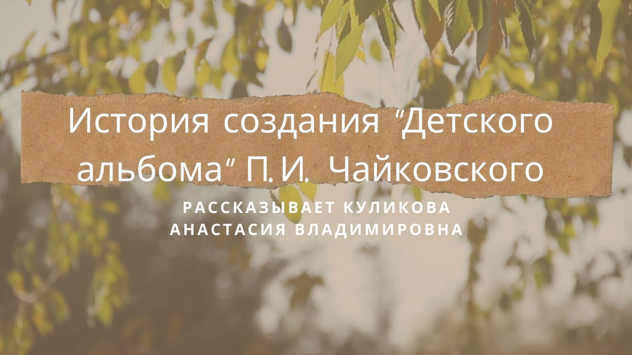 Знакомство с русским композитором П.И. Чайковским. История создания “Детского альбома” Чайковского. Рассказывает концертмейстер хореографической студии “Радость” Куликова Анастасия Владимировна 2020 год Сайт-визитка ЦДТ «Ново-Переделкино»: https://cdtnp.ru/ Мы ВКонтакте: https://vk.com/cdtnp Канал ЦДТ «Ново-Переделкино» в Телеграм: https://t.me/cdtnp Мы на ЯRUS: https://yarus.ru/u/4276394 Яндекс Дзен: https://dzen.ru/id/6321cf839e9593628da8f19a Официальный сайт ЦДТ «Ново-Переделкино»: https://cdtnp.mskobr.ru/