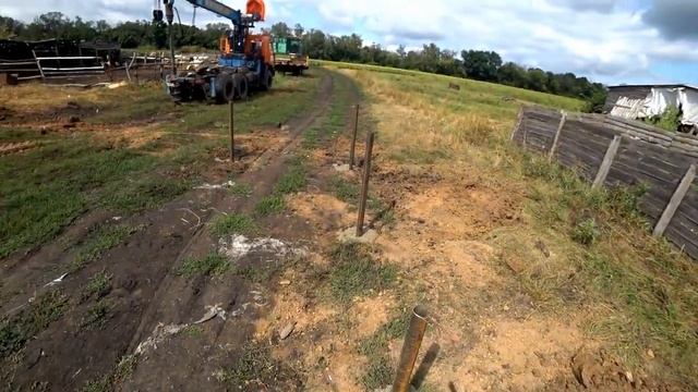 бурение под сваи ,заливка миксером, строительство бескаркасного ангара(вторая часть) второй день