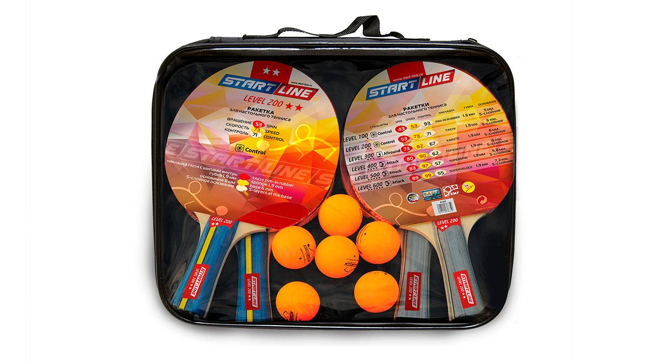 В набор для настольного тенниса START LINE входит: 4 ракетки Level 200, 6 мячей Club Selec 61-453-1. Упаковано в сумку на молнии с ручкой _______ Всё для настольного тенниса на нашем сайте start-line.ru. Получить консультацию по ассортименту и акциям можно по телефону бесплатной линии 8 800 505 44 90