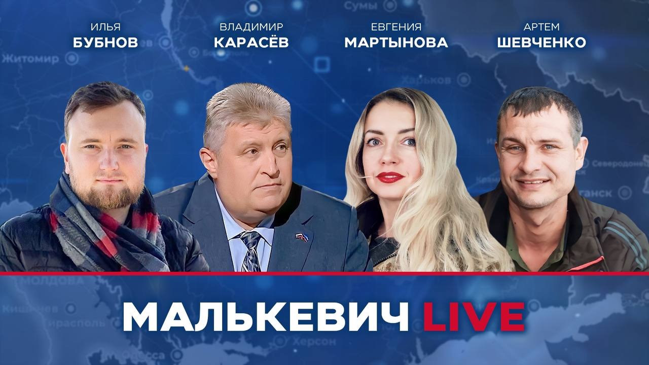 ▪ Обозреватель ИА Ньюс-Фронт, политолог Владимир Карасёв (https://t.me/VladimirKarasyov) ▪ Бывший военнослужащий ДНР, уроженец Горловки, участник кадрового конкурса «Лидеры возрождения. ДНР» (https://t.me/dnr_lideryvozrozhdeniya) Артем Шевченко ▪ Заместитель министра молодежи, спорта и туризма ДНР Илья Бубнов (https://t.me/Bubnov_l) ▪ Журналист из Донецка, эксперт по прифронтовой жизни Евгения Мартынова (https://t.me/martynovadn) ?? Обсуждаем главные новости и события новых регионов России Встречаемся на любой удобной для вас площадке: ✅ Телеграм (https://t.me/malkevich_live) ✅ ВК (https://vk.com/media_malkevich) ✅ YouTube (https://www.youtube.com/@malkevich_live/streams) ✅ Полную версию стрима смотрите на площадке Rutube (https://rutube.ru/channel/27308024/) ? Плюс — мы выходим в эфире телеканала «ЗаТВ» (https://t.me/ZaTV_Media) на 22 кнопке в объединённом мультиплексе новых регионов. ? Также на нашей новой площадке — телеканале «ТНР» («Телевидение новых регионов») на 23 кнопке в объединённом мультиплексе Херсонской и Запорожской областей. ? Телевизионная версия стрима выходит также в ночном эфире телеканала «Санкт-Петербург». (https://t.me/topspb_news) ?Самые интересные моменты наших стримов вы можете посмотреть теперь и на нашей площадке Яндекс-дзен (https://zen.yandex.ru/malkevichlive) ? Ведущие стрима — журналист, член Общественной палаты РФ Александр Малькевич, (https://t.me/alexandr_malkevich) журналист RT Константин Придыбайло, (https://t.me/pridybaylo_k) главный редактор донецкого телеканала «Юнион» Виктория Мельникова (https://t.me/editor_in_chief_DPR) #работаем на #НовыеРегионы