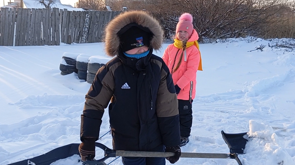 Замело.Снова разгребаем.Замерзла вода.